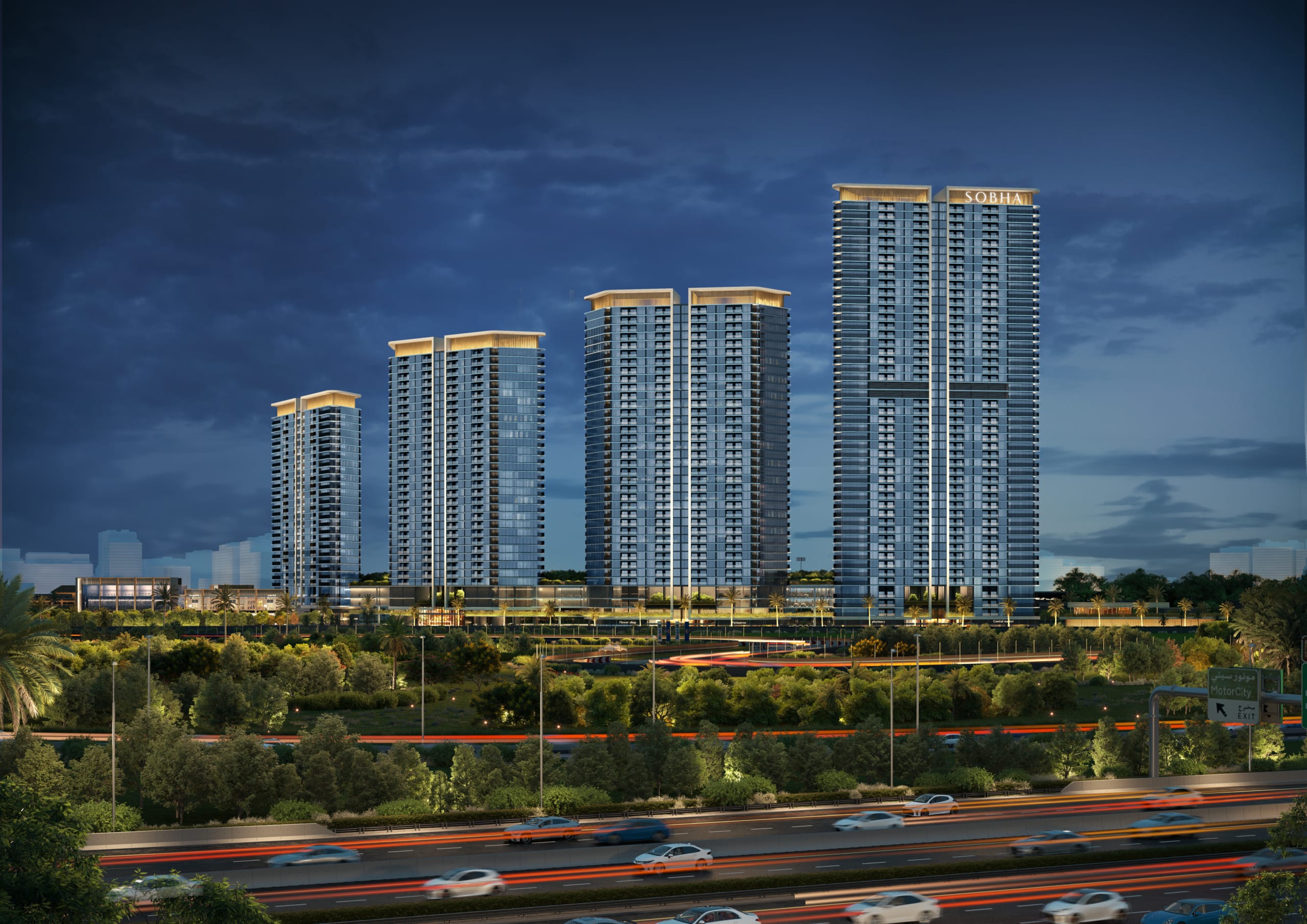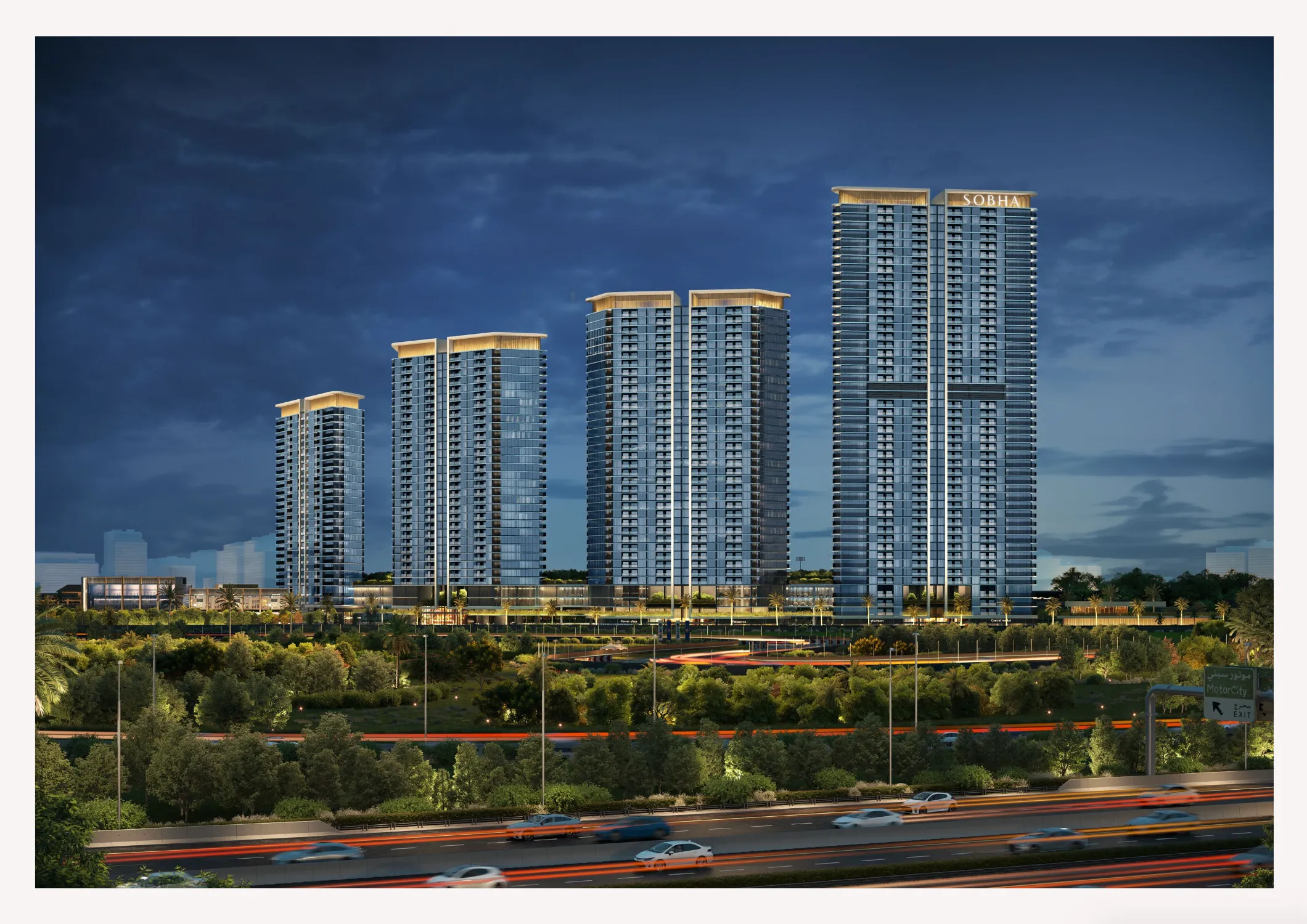 Sobha Solis is located in Motor City, Dubai, with easy access to Al Qudra Road and major highways.