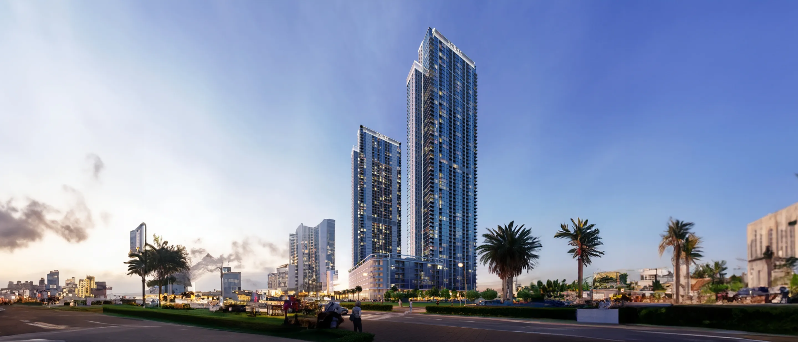 Two majestic 64-storey towers connected by a luxury podium. The project is famous for its 360-degree views of the Burj Khalifa, Downtown Dubai, and the Dubai Water Canal. Amenities include a large swimming pool, a "community arena," state-of-the-art gym, and proximity to two international schools within the Hartland community.